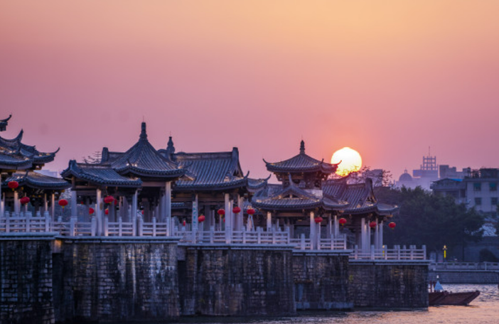 游览潮州八景之一“湘桥春涨”——广济桥景区广济桥:始建于南宋乾道七年,俗称湘子桥。横跨韩江,集梁桥、浮桥、拱桥于一体,全长 518 米,中间浮桥长 97.3 米,由十八只木船连接而成。其是潮汕地区著名文物旅游胜地,中国四大古桥之一,全国重点文物保护单位,国家AAAA 级景区,被桥梁专家茅以升誉为“世界上最早的启闭式桥梁”。
