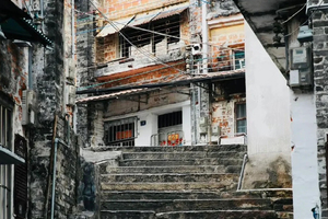 三十三墟街建立于清光绪年间,至今已经有一百多年的历史。一代硕儒陈白沙先生曾在此写下诗句“十步一茅椽,非村非市塵,行人思店饭,过鸟避墟烟。日漾红云岛,鱼翻黄叶川。谁为问津者,莫上趁墟船。”,诗中道出了三十三墟街当时的热闹繁华。这里像是上个世纪八、九十年代老西关的街道,但是这里显得更为朴素,脱落的墙面和长着青苔的石阶让这里有一种古朴沧桑的美感。