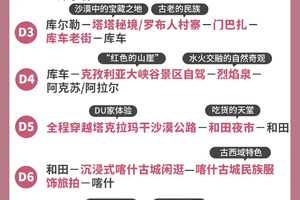 2、以下行程时间安排可能会因飞机进出港口、天气、路况等不可抗力因素,在不影响行程和接待标准的前提下进行游览顺序调整,敬请谅解!
