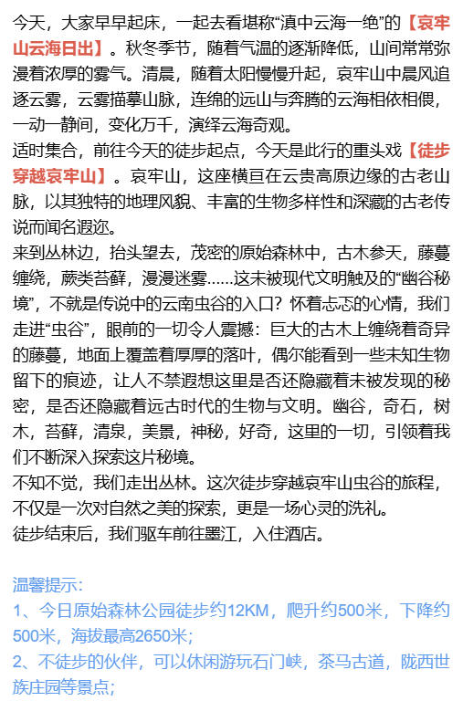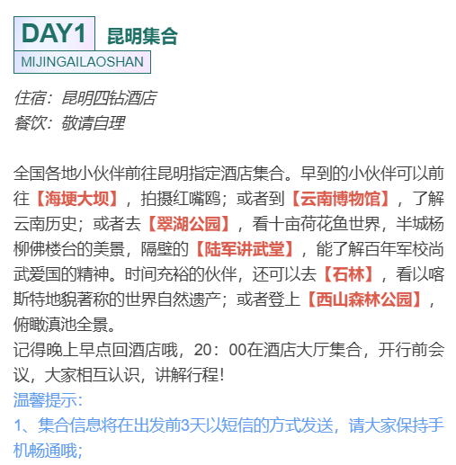 4、云南昼夜温差较大,请根据通知信息,带合适的服装,用品出行;