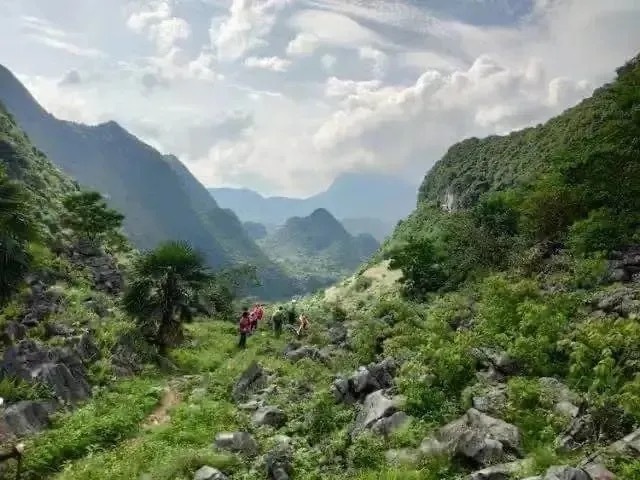 14:30 抵达天坑风景点,拍照游玩,休息;后 一路经过古道,密林,废弃村落,苍耳丛,到达线路终点;