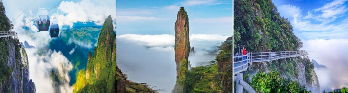 09:30【莽山·五指峰景区】(游览约 3 小时,不含往返缆车+接驳车 260 元/人 现场交付导游统一购买)五指峰景区地形复杂,以高山为主,险峰、奇松、怪石俯仰皆是,是中国南方原始生态第一山,坐拥大莽山核心精华景观。平均海拔在 1000 米以上,山高林密,具有优越的山地森林气候条件。森林覆盖率高达 95%,负氧离子超过 10 万个/立方厘米。莽山·五指峰景区有“中国南方第一森林氧吧”的称号。奇松、怪石、云海俱佳,云间栈道更是引人入胜。乘国内单线最长的观光缆车凌空飞渡,漫步中国南方最长的云间栈道,登小天台,观云海看日落,移步换景,步步震撼。(莽山新十景:指峰飞渡、云栈漫步、金鞭揽胜、东门迎祥、天梯观海、七星斗日、摩天望粤、天台探险、观音礼佛、万寿祈福)。