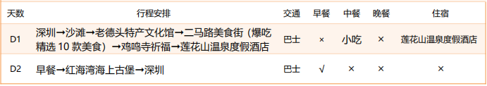 第一天:深圳→沙滩→汕尾老德头特产文化馆→二马路美食亲民烟火美食盛宴→鸡鸣寺祈福→莲花山温泉度假酒店/小型水上乐园/浸泡温泉