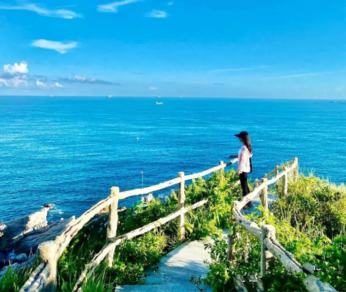 一边是山色旖旎,一边是海上烟波,听惊涛拍岸海啸风吟,回头再看看海天一色的绝美景色,眼界开阔心境澄明。