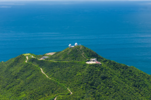 总占地面积近3 万平方米,登山道为阶梯步道,直达山下的穿鼻岩,并连接各个建筑物及观景平台、停车场等。天文台是一处重要景观,沿着栈道边走边欣赏海天一色美景。