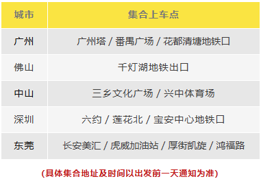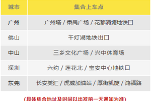 注意㈡:以上所有上车点,报名时请选择好并准时到集合点上车,超过集合时间10分钟未到达上车点的视为自动放弃本次活动,费用不退!