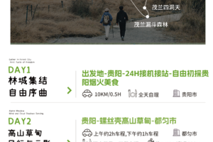 午后,若有闲暇,可前往青龙潭,看一汪碧水如翡翠镶嵌于山间。傍晚时分,乘车抵达龙里县城,在温暖的灯火中舒缓徒步后的身躯。