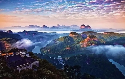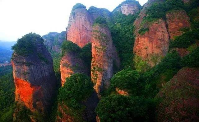 世界地质公园——【丹霞山】丹霞山是世界“丹霞地貌”命名地。丹霞山由680多座顶平、身陡、麓缓的红色砂砾岩石构成,“色如渥丹,灿若明霞”,以赤壁丹崖为特色。据地质学家研究表明:在世界已发现1200多处丹霞地貌中,丹霞山是发育最典型、类型最齐全、造型最丰富、景色最优美的丹霞地貌集中分布区。长老峰景区分上、中、下三个景观区:下层景观区有始建于北宋的锦石岩石窟寺、长天一线、龙磷片石、五色间错大斑石等典型的赤壁丹崖景点;中层为别传禅寺景观层,有岭南十大禅林之一的别传禅寺和鸳鸯树等景点;登丹梯铁索即至上层景观区,长老峰、海螺峰、海珠峰三峰并峙,环顾四周,丹霞秀色,一览无遗。其中观日亭是晨观日出,昏赏晚霞的好去处。