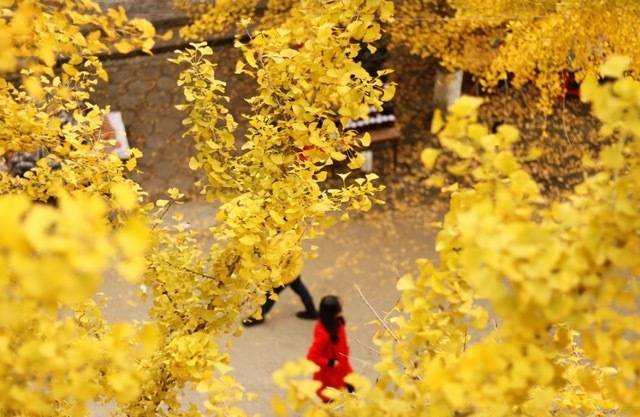 秋风吻尽银杏时,邂逅醉美帽子峰。