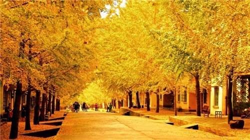 黄金大道,街道边种了两排银杏树,和白色的路灯相配,宛若欧洲小镇,风情万种,金秋的帽子峰,呈现给游客一个五彩斑斓的世界。
