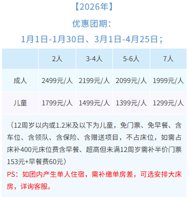 l 1.2米以下为儿童,免门票、免早餐、含车位、含领队、含保险、含赠送项目、不占床位;
