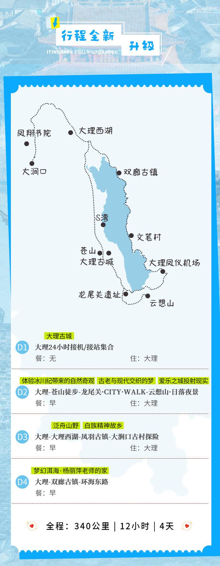 3、大理由于位于祖国西南地区,相对日落时间较晚,景区内用餐消费体验一般,如有饮食需求,请随身携带零食。