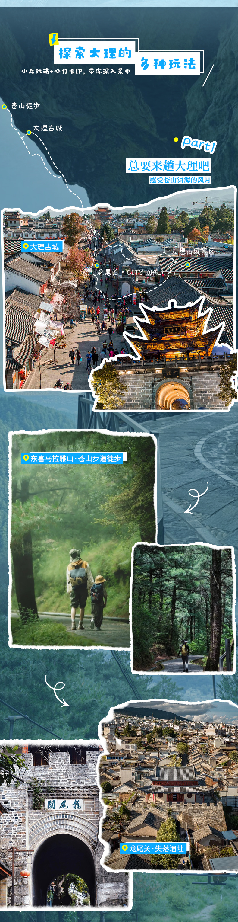 第二天:大理-苍山徒步(中和索道精华段8km)-龙尾关city·walk-云想山日落·大理夜景(约60KM,车程约1.5小时)