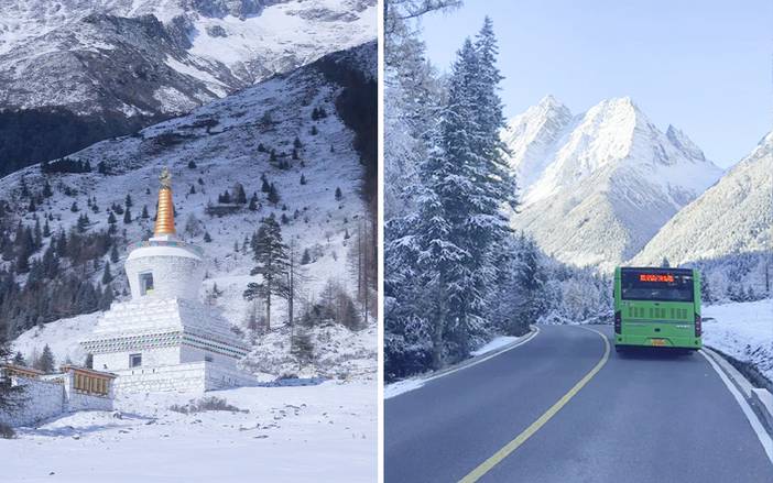 (3)冲古寺~洛绒牛场观景车:共设起点站(冲古寺站)、1号站(千佛山站)、2号站(圣水湖站)、3号站(央迈勇站)和终点站(洛绒牛场站)五个站点,游览车全程票70元(往返),单程票40元,区间票每站10元(可选择徒步,客人自愿自主消费);