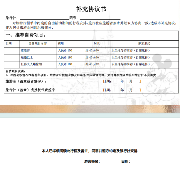 4、导游不陪同游览某些景点,如需寄存行李,费用自理。