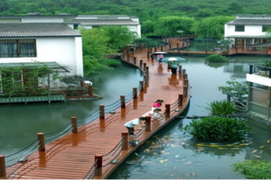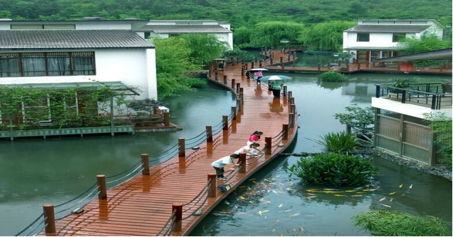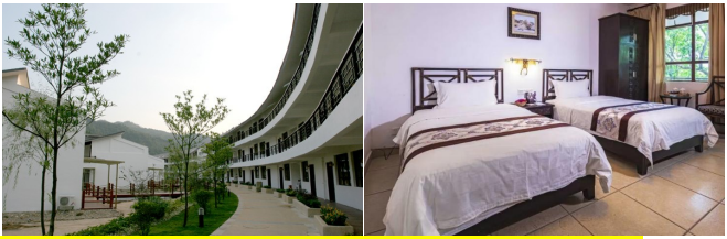 南湖东岸温泉别墅房参考图片:度假村B区建有南湖东岸山水田园温泉别墅群(房间内带私家泡池,无限次浸泡),建筑风格独特,以山水田园风光为背景,体验远离城市喧嚣、回归休闲自然之意境。