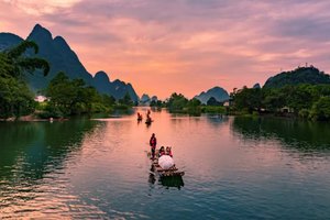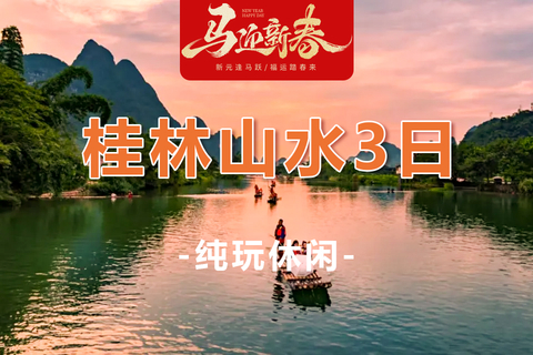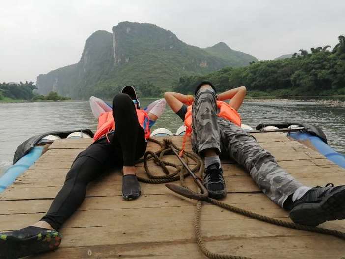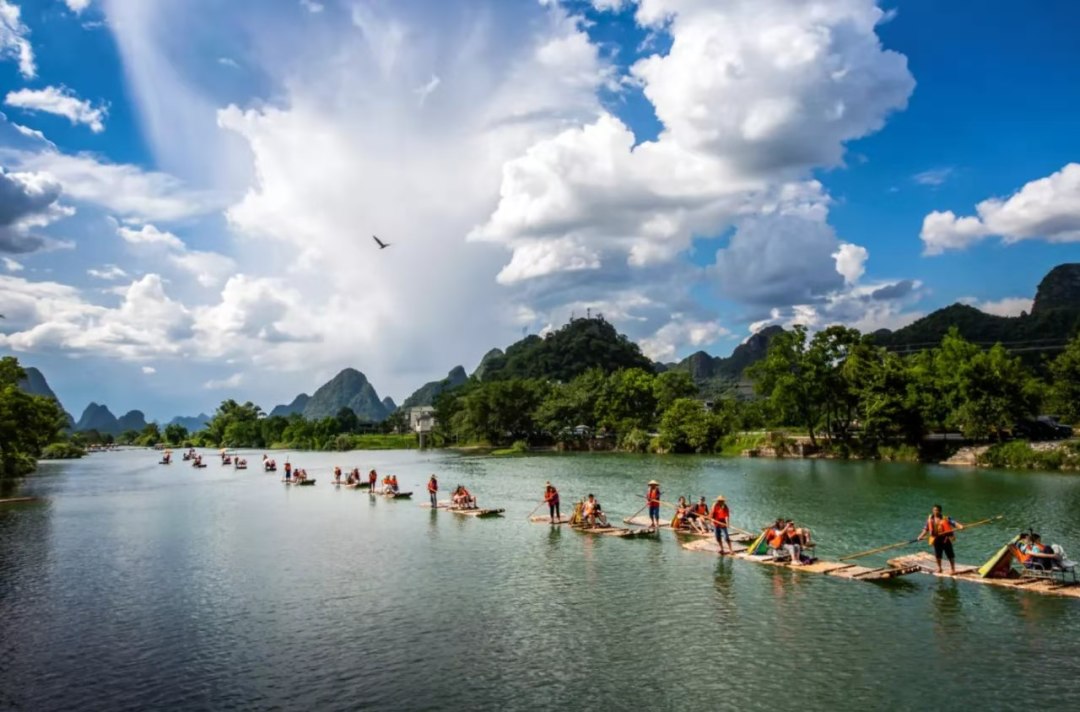 08:00 【多人竹筏】(门票已含,游览时间约为1.5小时)人称“小漓江”,不是漓江胜似漓江。在其上泛舟漂流,赏两岸桂林山色,才不虚此行。两岸山峦百态千姿,河畔翠竹叠嶂,蕉临四季常青,沿岸地稻田一年四季颜色不断变化,田野里一片生机勃勃,诗情画意尽显其中。