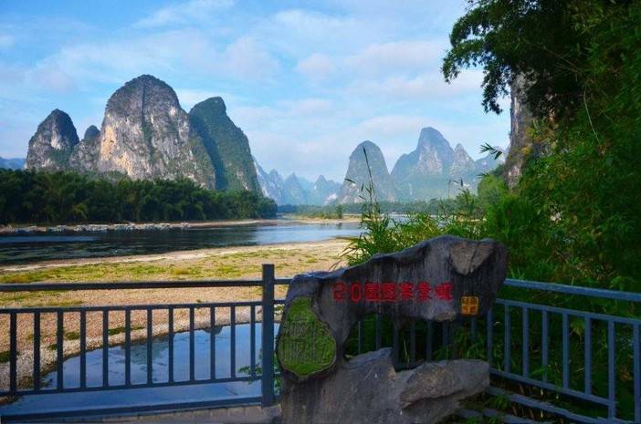 徒步前往【20元人民币观景台】,经过20元拍照台后,可以穿过小路走到漓江河畔,这里不仅风景好,同时人也非常少、河水清澈、瞬间有脱掉衣服去里面游泳的冲动。如果时间允许可以在里面玩水、但是一定要注意安全、多人结伴最好,笔者因为要前往相公山,因此放弃了。河边政府铺了一条石头路,走起来很方便 (想坐船游漓江的自行前往码头排队买票,在领队指定的时间回来集合)