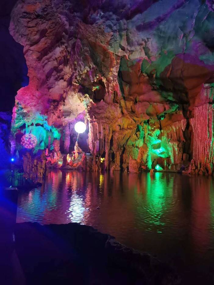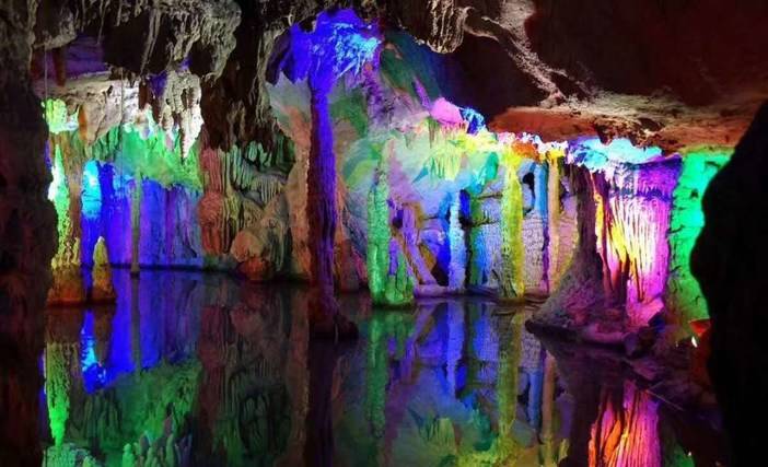 14:00 到达阳朔聚龙潭,游览【聚龙潭】(门票已含、游览时间约为2小时)岩洞内拥有特色景点:观景天桥,天然形成的“观音菩萨“,”海底世界“、”龙王宝座“、”皇宫御伞“……洞内无任何人工雕琢,保持原始岩洞风貌!景区为自然喀斯特风貌岩洞。