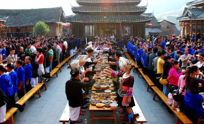 17:30集合,前往独家定制环节:少数民族特色长桌宴,侗族最高招待礼仪高山流水敬酒仪式,篝火晚会嗨翻全场!迎接新的2026年
