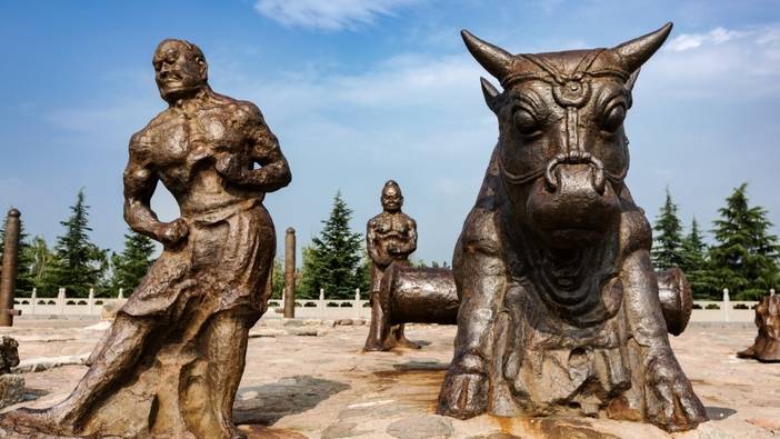 不远处,四尊威风凛凛的唐代【开元铁牛】静卧于此,作为古代黄河浮桥的锚地,它们曾耗举国之铁,是盛唐国力与工程奇迹的沉默见证。